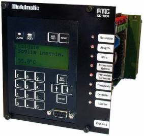 - Display a LCD retroilluminato, 4x16 caratteri alfanumerici - Tastiera da 8 tasti per funzioni specifiche e 10 tasti numerici - Indicazione allarme generico a LED rosso lampeggiante, tacitabile a luce costante - Segnalazione Run/Fault a LED verde/rosso - Programmazione di dati personalizzabili
