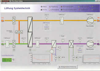 | Presentazione di valori di misurazione, stati, setpoint attuali e di messaggi impianto/sistema direttamente nella grafica utente con segnalazione cambio stati tramite cambio colori e possibilità di tacitazione | ||||||||||